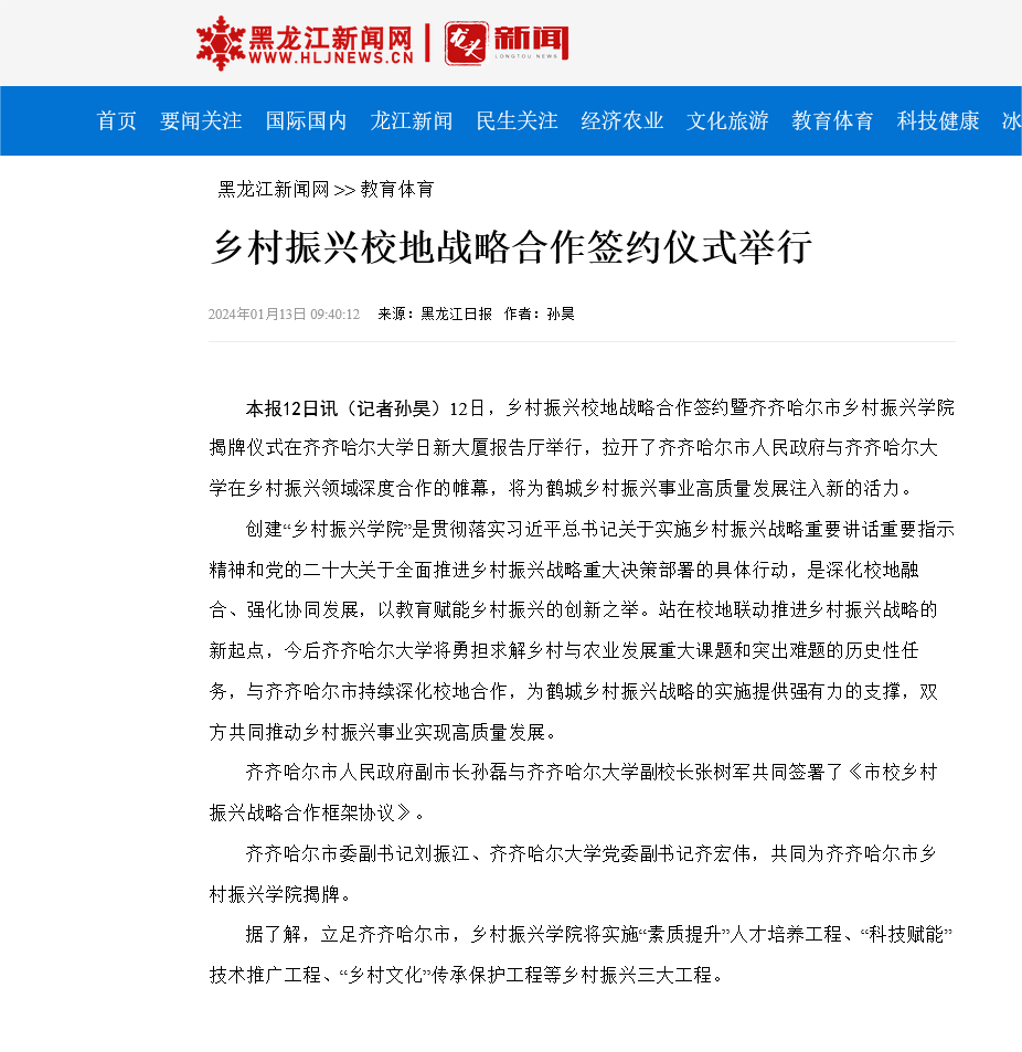 下一条:【龙头新闻】揭牌!乡村振兴校地战略合作签约在齐齐哈尔举行