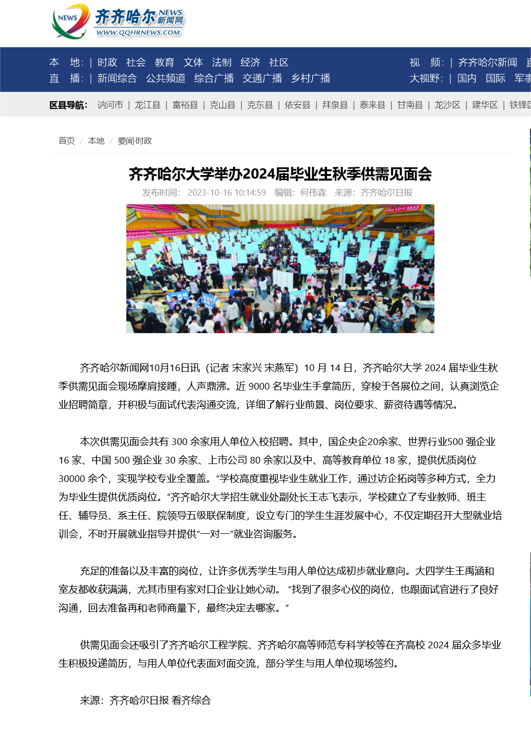 【齐齐哈尔新闻网】beats365唯一官方网站举办2024届毕业生秋季供需见面会
