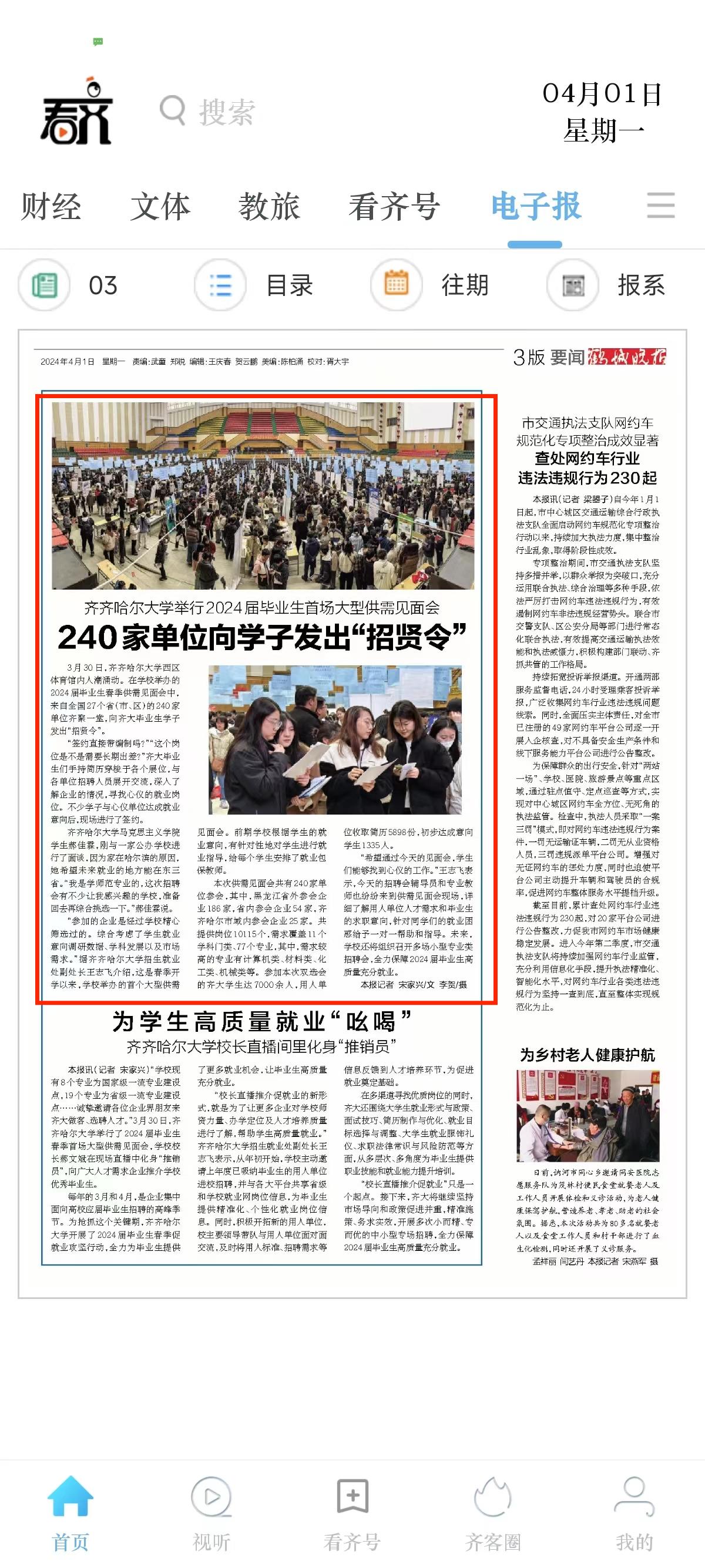 下一条:【齐齐哈尔日报】齐大举行2024届毕业生首场大型供需见面会