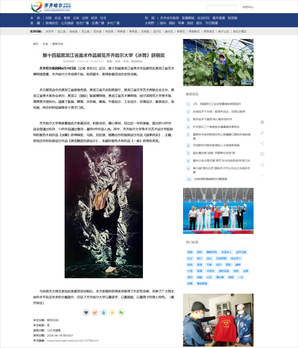 【齐齐哈尔新闻网】第十四届黑龙江省美术作品展览beats365唯一官方网站《冰舞》获铜奖