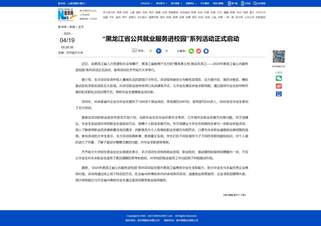 【新华网】“黑龙江省公共就业服务进校园”系列活动正式启动