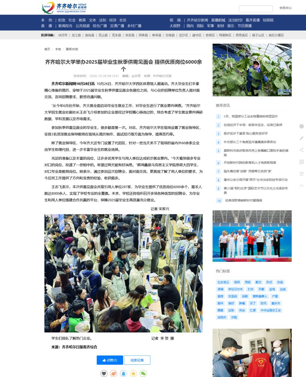 【齐齐哈尔新闻】beats365唯一官方网站举办2025届毕业生秋季供需见面会提供优质岗位6000余个