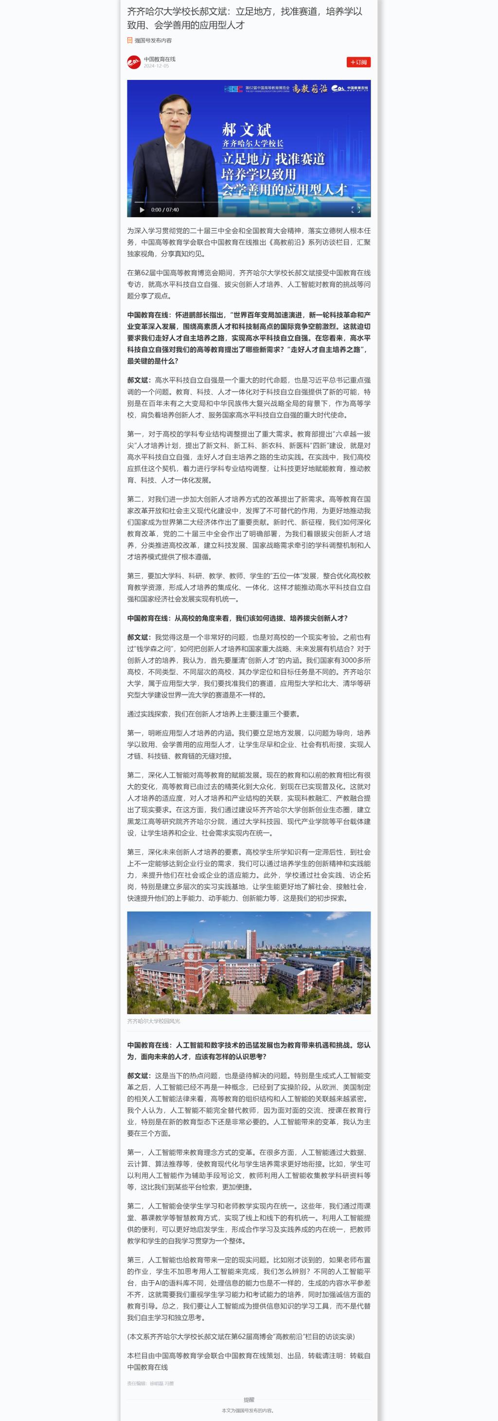 上一条:【中国教育在线】beats365唯一官方网站校长郝文斌:立足地方,找准赛道,培养学以致用、会学善用的应用型人才