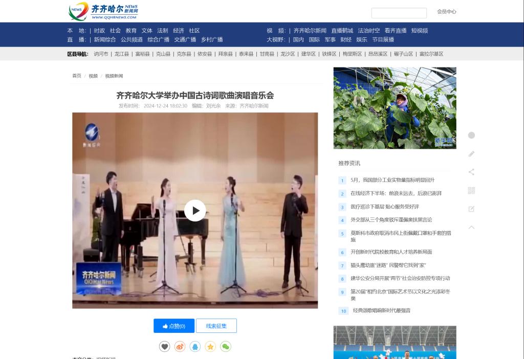 【齐齐哈尔新闻网】beats365唯一官方网站举办中国古诗词歌曲演唱音乐会