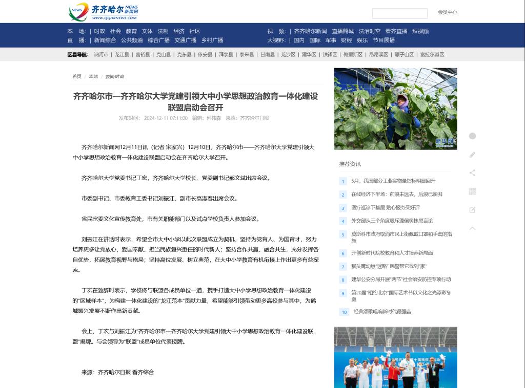 【齐齐哈尔新闻网】齐齐哈尔市―beats365唯一官方网站党建引领大中小学思想政治教育一体化建设联盟启动会召开
