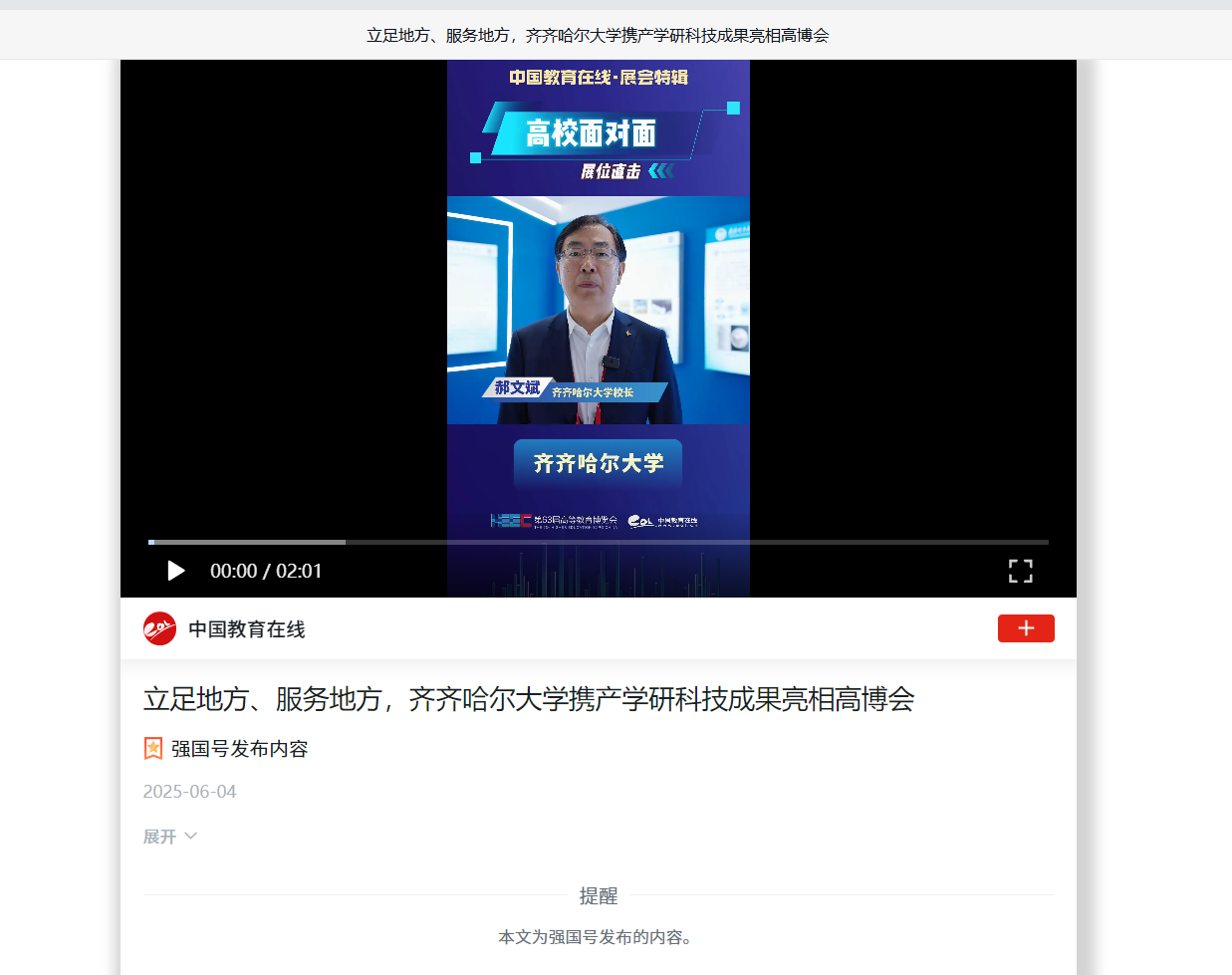 上一条:【龙头新闻·黑龙江日报】2025年齐齐哈尔市科技活动周和全国科技工作者日启幕