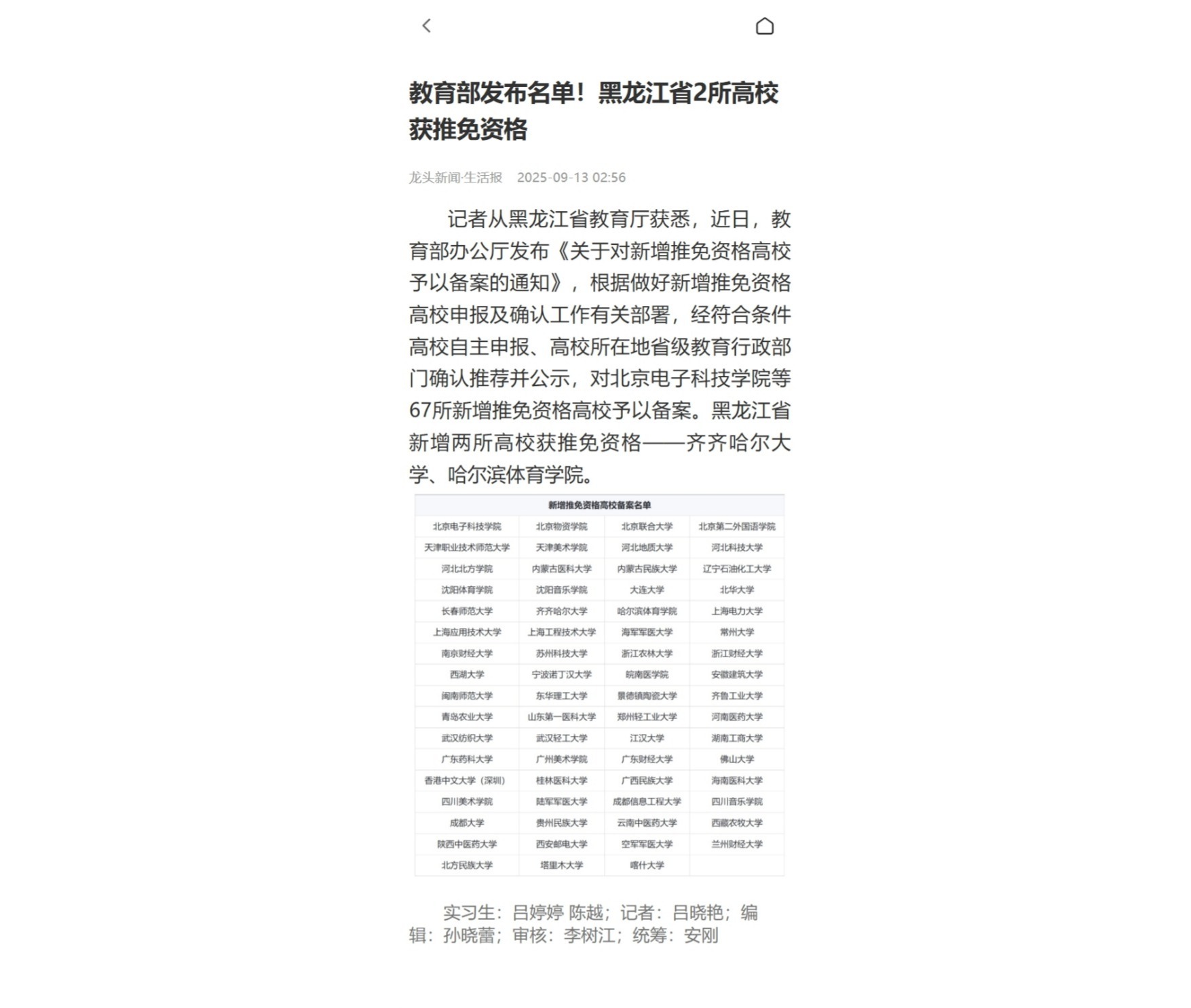 上一条:【光明网】教育部备案!全国新增67所推免资格高校