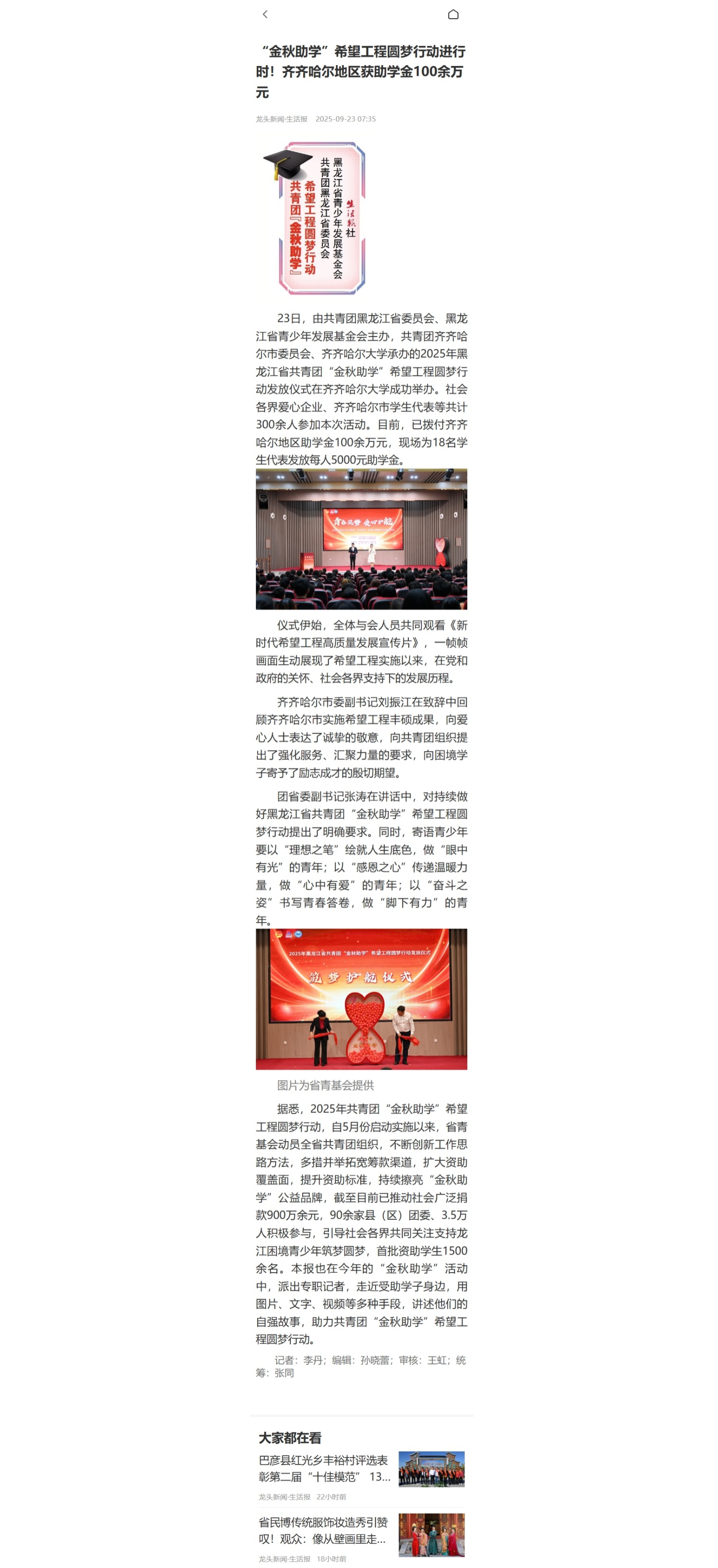 上一条:【黑龙江日报】“金秋助学”希望工程圆梦行动举行助学金发放仪式