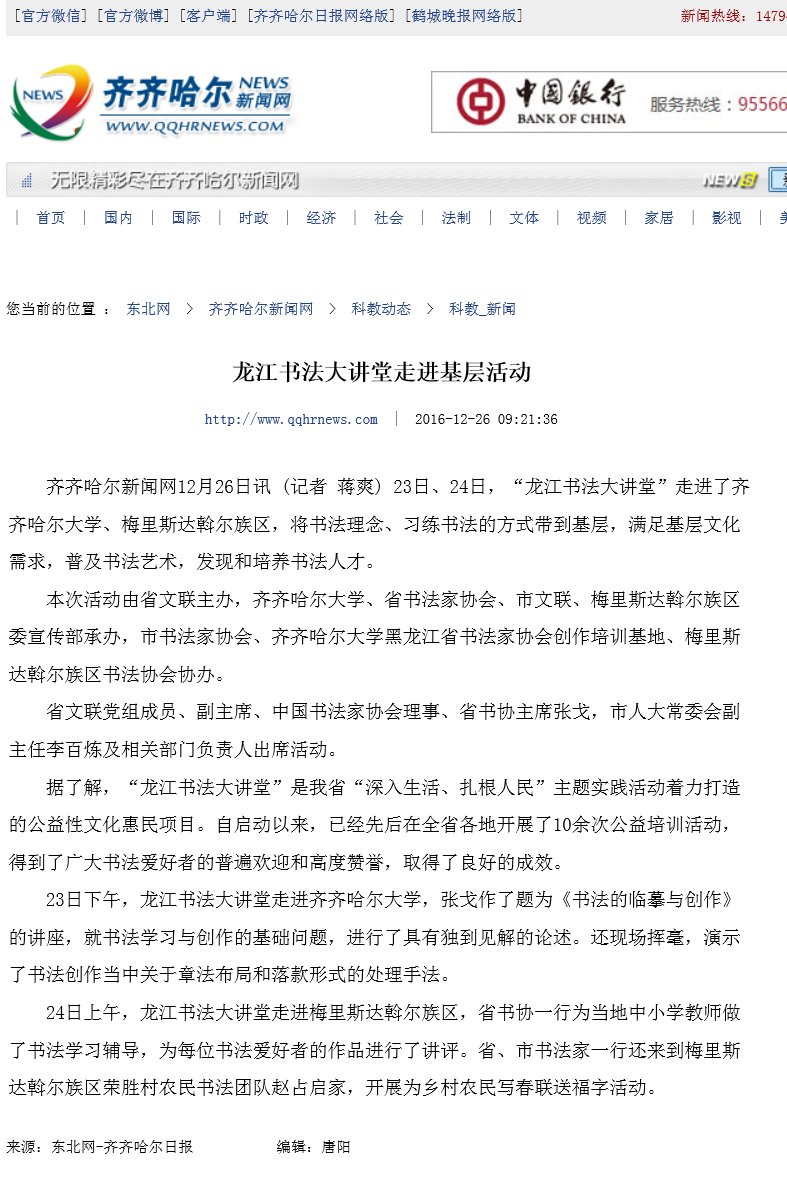 《齐齐哈尔日报》:龙江书法大讲堂走进基层活动
