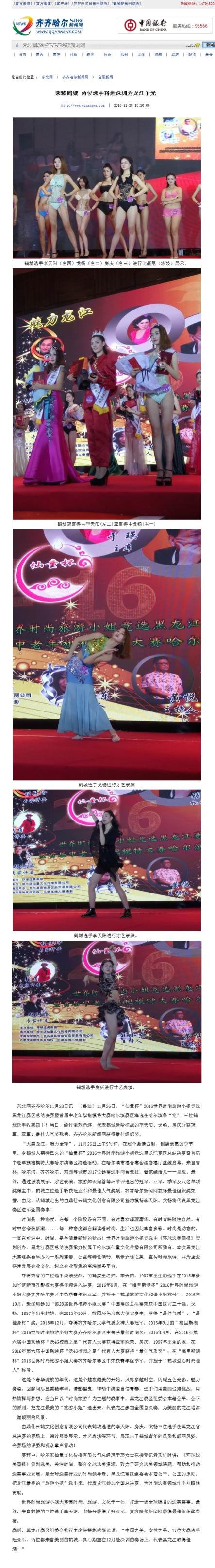 齐齐哈尔新闻网:齐大学生包揽2016世界时尚旅游小姐竞选黑龙江赛区总决赛冠亚军