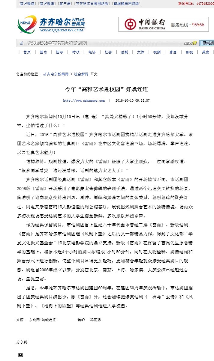 《鹤城晚报》:今年“高雅艺术进校园”好戏连连