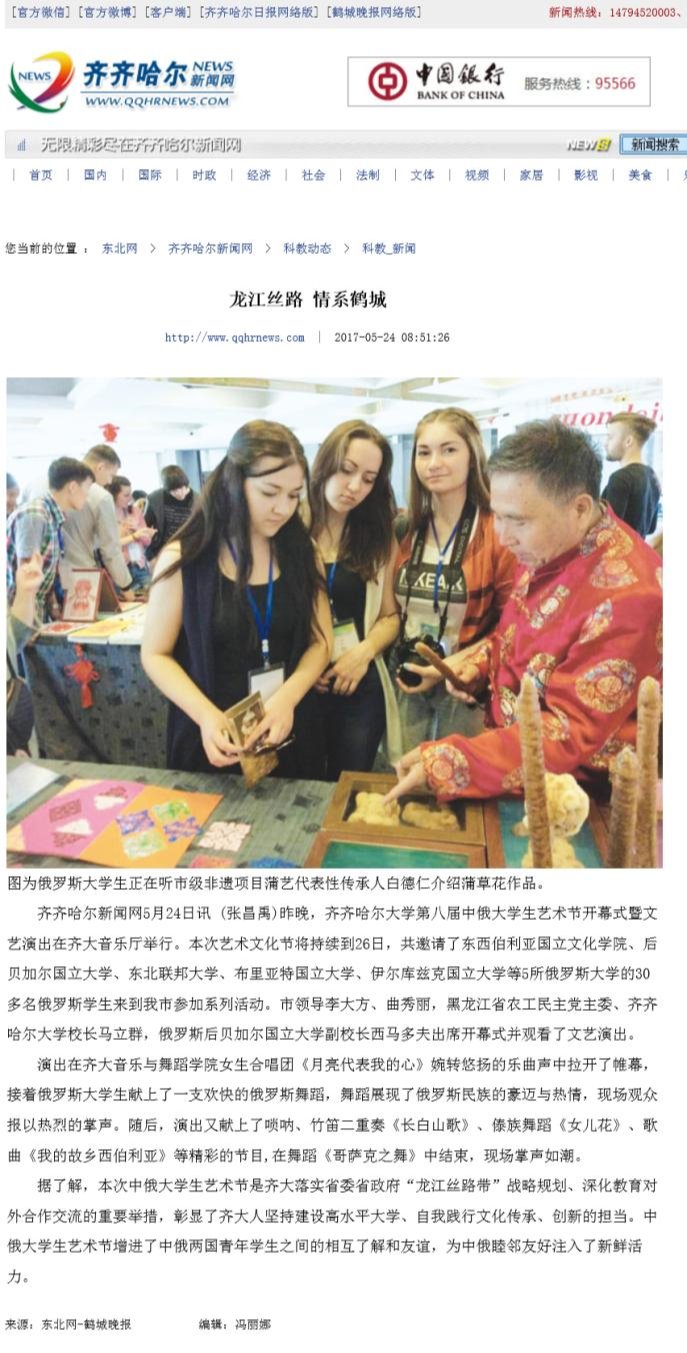 上一条:【齐齐哈尔日报】beats365唯一官方网站第八届中俄大学生艺术节开幕