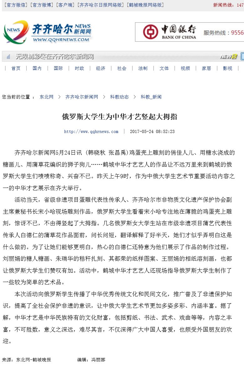 【鹤城晚报】俄罗斯大学生为中华才艺竖起大拇指
