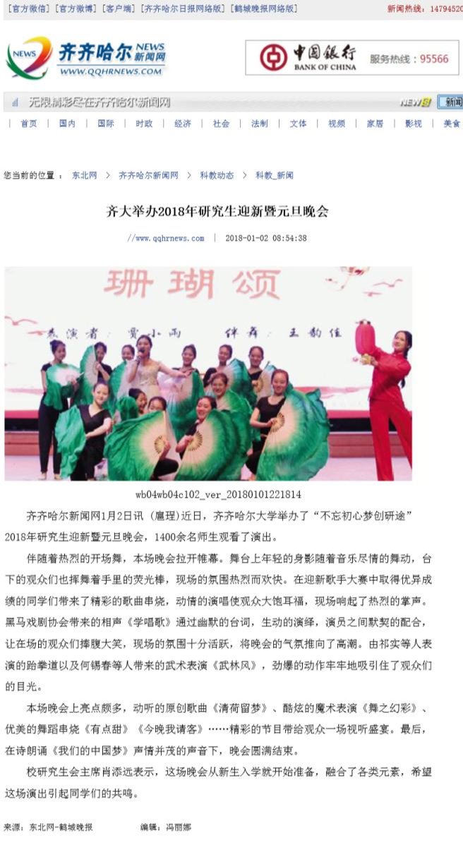 【鹤城晚报】齐大举办2018年研究生迎新暨元旦晚会