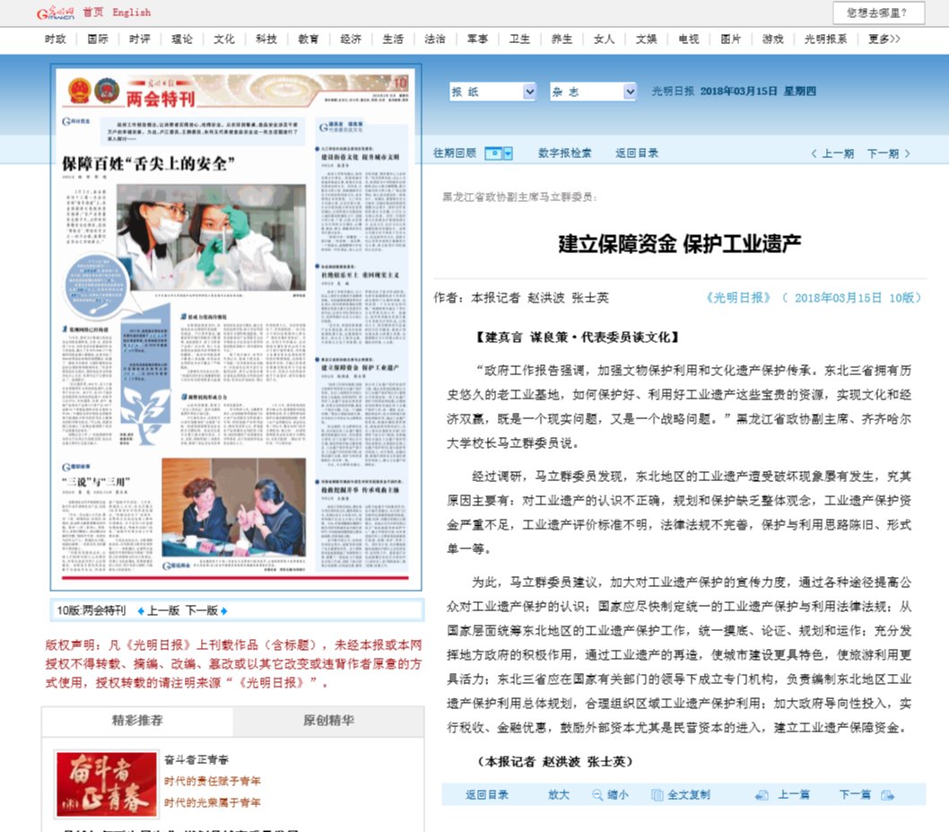【光明日报】马立群委员:建立保障资金 保护工业遗产