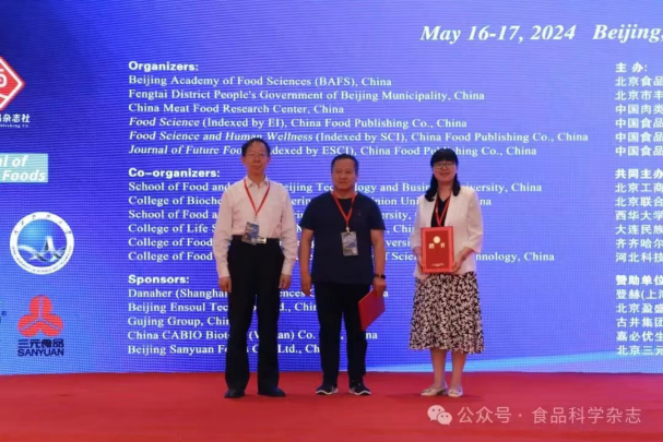 我院作为主办方之一,食品与生物工程学院院长任健带领教师队伍共10人参加了此次研讨会。会上,孙宝国院士为任健教授颁发《食品科学》编委证书。