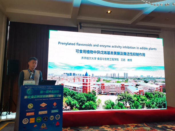 研讨会上,我院食品与生物工程学院副院长宋春丽教授、焦岩教授、王岩教授分别以“糖含量对大豆蛋白起泡性的影响”、“糖基化玉米蛋白载叶黄素纳米颗粒的制备、结构表征和功能特性研究”、“可食用植物中异戊烯基类黄酮及酶活性抑制作用”为题进行汇报。三位教师从研究目意义、研究内容及创新性、成果技术优势、产品开发与产业化情况四个方面做了全面阐述,讲述内容引起了与会专家学者和企业人士关注与好评。